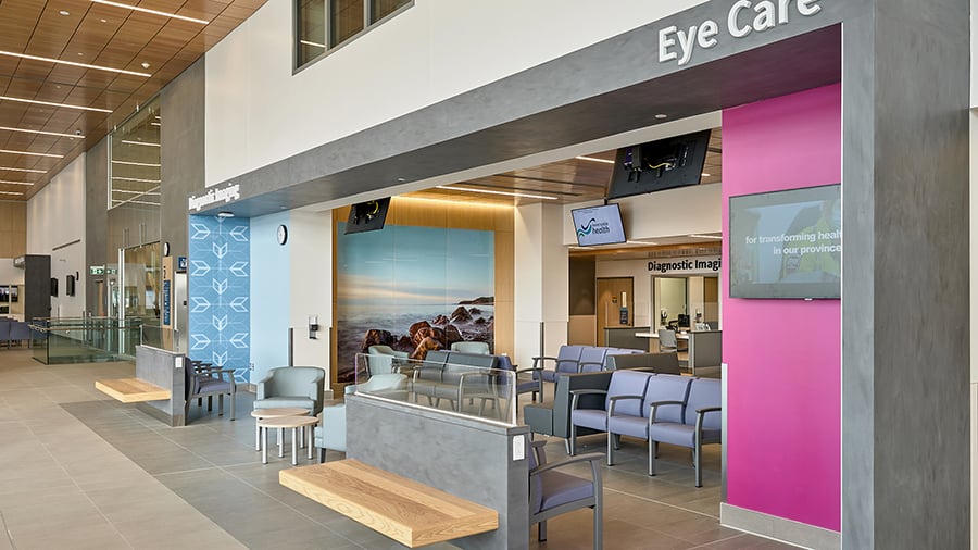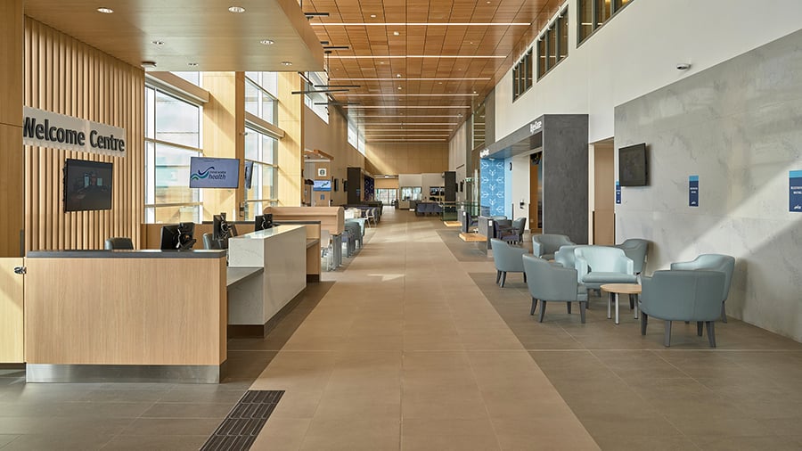 A key architectural feature of the facility is the Great Hall, a double height glazed space that houses the Welcome Centre, a cafe, and waiting areas, and offers a myriad of opportunities for casual use, socialization and respite for patients, families, and staff. The architectural expression of the facility provides a fresh, contemporary approach to healthcare architecture and facility design that reinforces concepts of quality, wellness, and a connection to nature.
