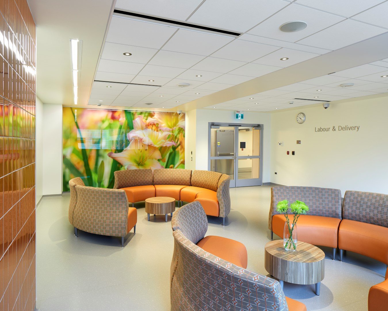 Clinical programs here are a consolidation of women and children’s health services from multiple locations into one comprehensive facility. Bringing these services under one roof enables improvements in the quality of care for newborns and provides a more streamlined experience for patients. The Women’s Triage Facility, large specialty ultrasound suite, flexible obstetrics and gynecology ambulatory care clinics, gynecology perioperative center, and inpatient unit provide a full range of services for women, both before and after childbirth.